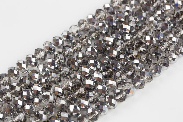 10mm Crystal Rondelle -2 or 5 or 10 STRANDS- Half Silver