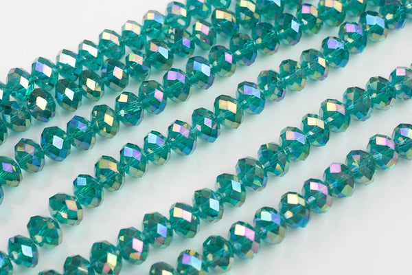 12mm Crystal Rondelle -2 or 5 or 10 STRANDS- Teal Green ab