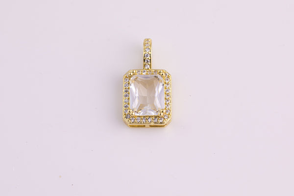 14k Gold Plated Diamond CZ rectangle charm emerald cut cz pave charm 20x11mm x7