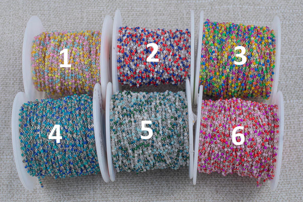 1.5mm Gold-filled Or Sterling Silver Multi Color Close Tight Spacing Enamel Chain by the foot or 50 feet-- Permanent Jewelry Chain