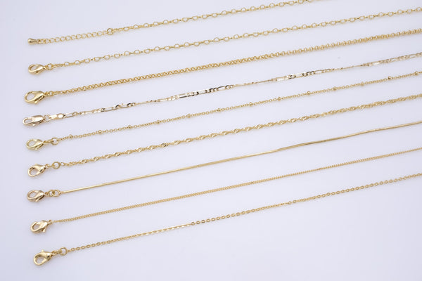 16" 14K DAINTY NECKLACE CHAIN Gold for Layering - Satellite Snake Singapore Figaro Oval Rolo Chain 16" w/ 2-3" extender chain
