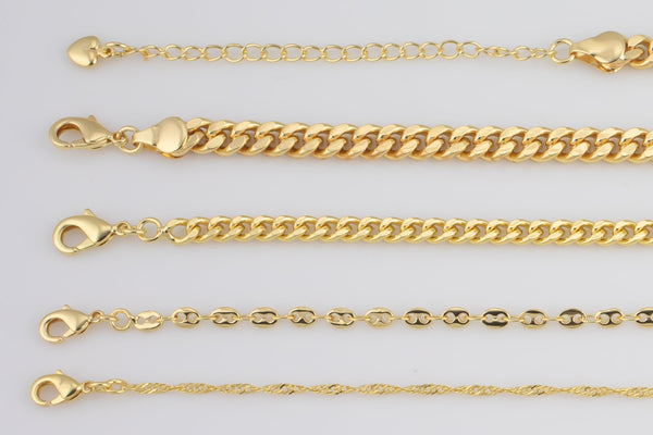 16" 14k Gold Anti-Tarnish Gold Necklace Flat Cuban Curb Singapore Chain Chains Finished necklace chain with extender ready to wear