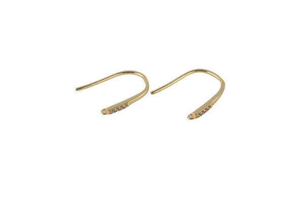 18kt Gold Earring Hook Wire CZ Earring, dainty Hoops, gold ear Hoops minimalist jewelry- 2 pcs fish hook earrings