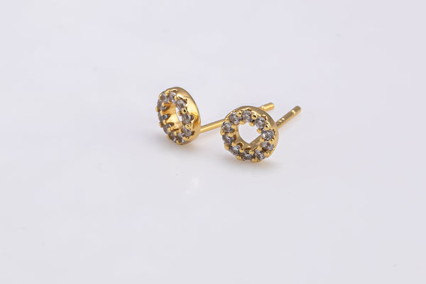 18kt Gold Stud Round Design CZ Earring- 2 pcs per order- 6mm