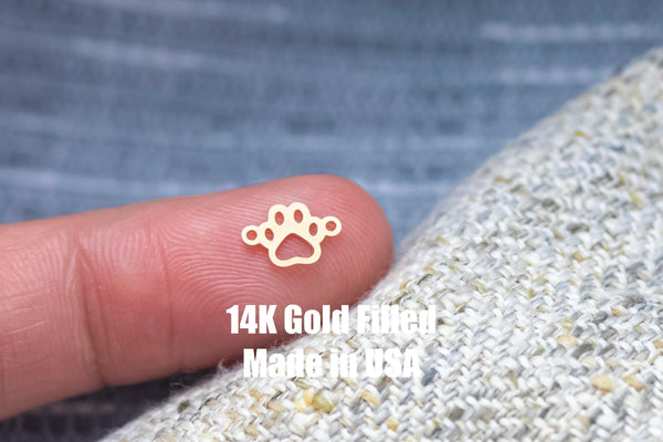 2 pcs Dog Paw Connector 14K Gold Filled Sterling Silver Paw Print Connectors Dog Paw Link for Bracelet or Necklace Permanent Jewelry Supply