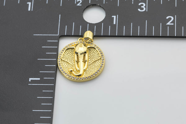 2 pcs Elephant Gold Lucky Coin Talisman Charm Necklace, 14k Gold Disc Round Pendant Lucky Medallion Pendant for Necklace- 20mm