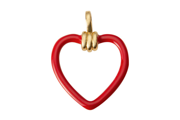 2pc Red Open Heart Charms Enamel Colorful Hearts Black White Red on Gold Frame for Earring Necklace Charm- 2 pcs per order- 26mm