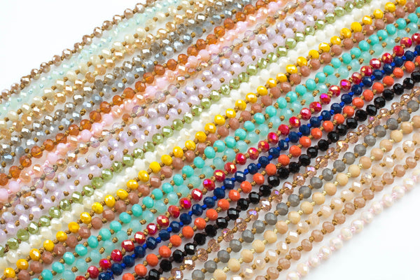 6mm Double Wrap Knotted crystal necklaces. Long Hand-Knotted Crystal- 60 inches long! - Long Necklace