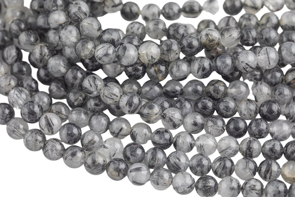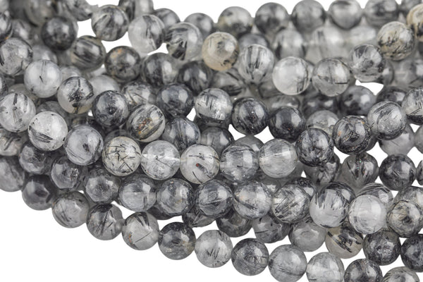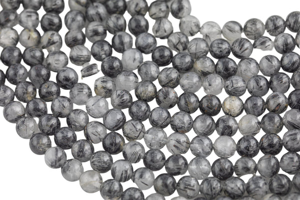 AAA Black Tourmaline Rutilated Rutile Quartz Smooth Round Beads 6mm 8mm 10mm High Quality Quartz Semi Precious Gemstone 15.5" Strand
