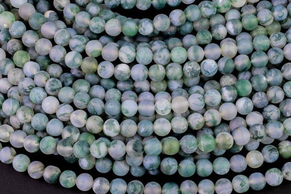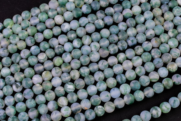 AAA Natural Matte Green Moss Agate Round Beads 4mm Round Beads 6mm Round Beads 8mm Round Beads Green Gemstone Spheres 15.5" Strand