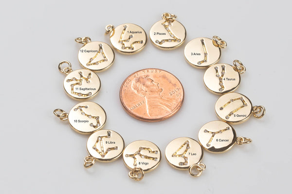 Astrology Zodiac Symbol Charms Constellation Gold charms - Small and cute- Perfect for personalization - 11mm