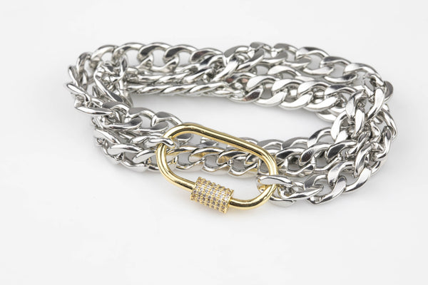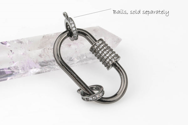 CZ Micro Pave Oval Shape Screw Clasp, Gold/Rose gold/Gunmetal/Silver Plated U Shape Clasp Lock, Carabiner Pave Lock, 16x30mm