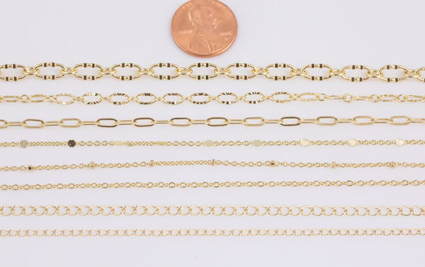 Dainty 14k Gold Plated Paperclip Chains - Tarnish Resistant Popular Dainty Satellite Oval Curb Fancy Paperlclip chain - Sold by the yard