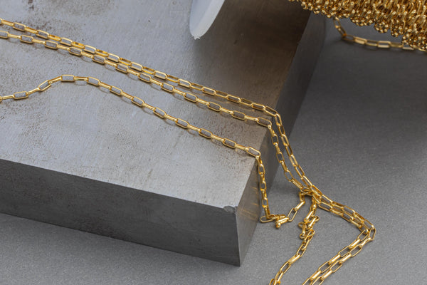 Gold Filled Elongated Oval Rolo Chain 1.3x3mm - Dainty Paperclip Style Wholesale Chains for Permanent Jewelry - USA made