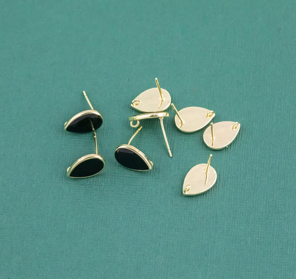 Gold plated brass earring post Black Enamel Teardrop 8x12mm Brass earring charms shape earring connector earring findings jewelry supply sx1