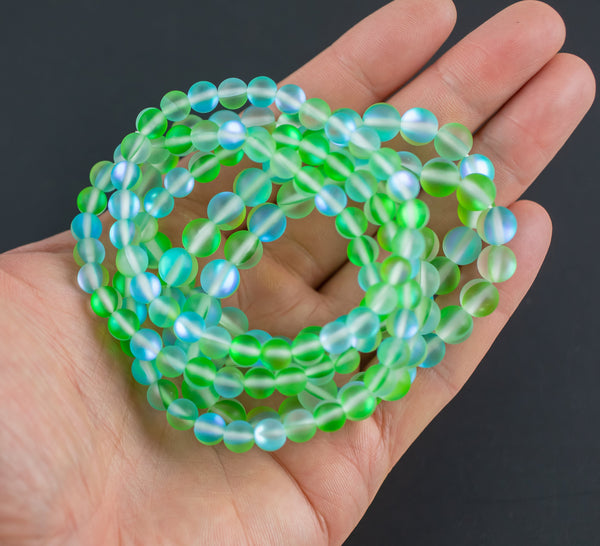 Green Mystic Aura Quartz Bracelet Round Size 6mm and 8mm- Handmade In USA Natural Gemstone Crystal Bracelets - Handmade Jewelry - approx. 7"