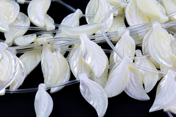 Iridescent White Mother of Pearl MOP Shell Leaf Drop Beads- 2 Pieces per order- 13x31mm Shell Beads