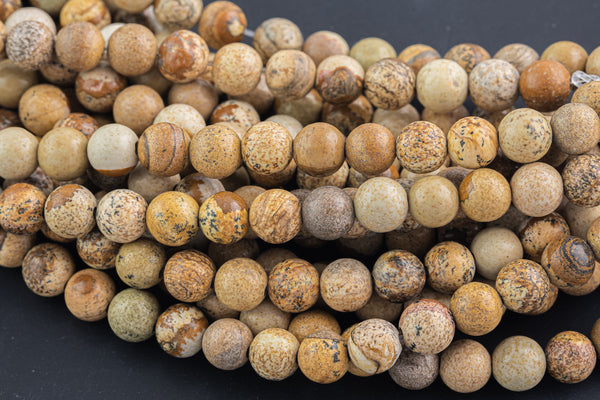 LARGE-HOLE beads!!! 8mm or 10mm smooth-finished round. 2mm hole. 7-8" strands. Smooth Picture Jasper Big Hole Beads