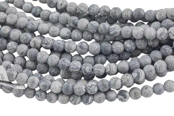 LARGE-HOLE beads!!! 8mm or 10mm Matte -finished round. 2mm hole. 7-8" strands. Smooth Gray Silver Picasso Jasper. Big Hole Beads