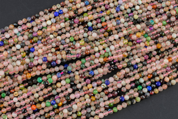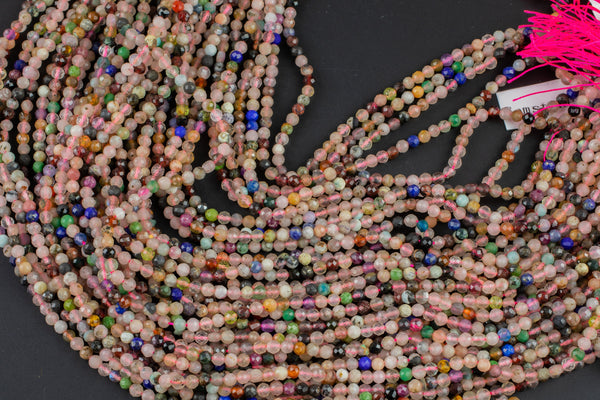 Multi Gemstone- Full Strands-15.5 inches-2-3mm- Nice Size Hole- Diamond Cutting,High Facets-Nice and Sparkly-Faceted Round