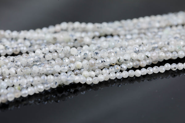 Mystic Silverish Moonstone Full Strands-15.5 inches-3mm- Nice Size Hole- Diamond Cutting, High Facets-Nice and Sparkly-Faceted Round