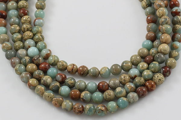 NATURAL AFRICAN OPAL Sea Sediment Jasper Beads smooth round sizes 4mm, 6mm, 8mm, 10mm, 12mm- In Full 15.5 inch Strand- Gemstone Beads