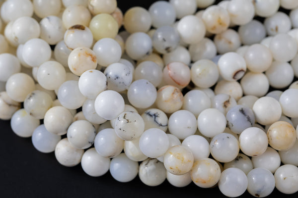 Natural African White Dendritic Opal 6mm 8mm Round Beads Creamy White Beige Taupe Opal Gemstone 15.5" Strand Gemstone Beads