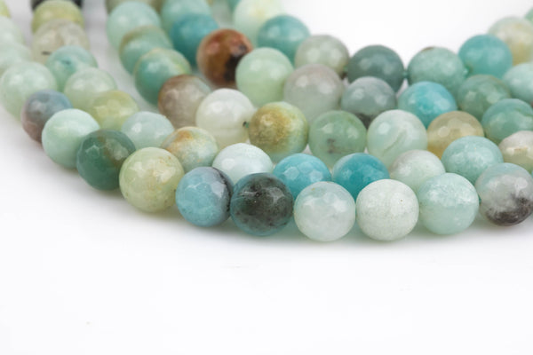 Natural AMAZONITE Beads faceted round sizes. 4mm, 6mm, 8mm, 10mm, 12mm, 14mm-Full Strand 15.5 inch Strand Gemstone Beads