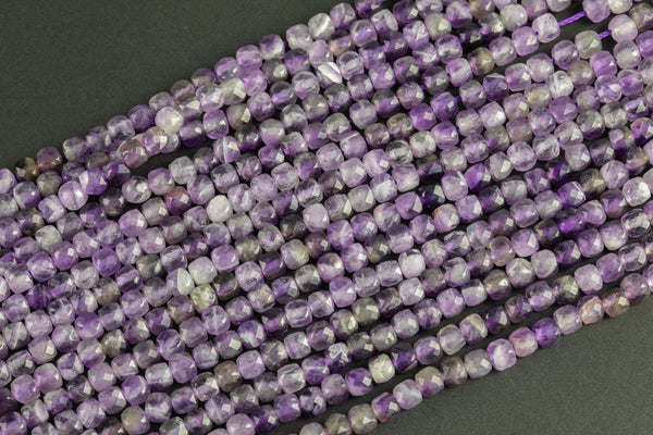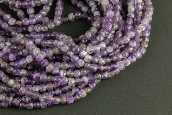 Natural Amethyst Moonstone Faceted Cube Beads Size 4-5mm 15" Strand