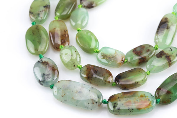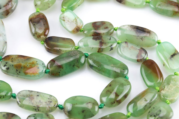 Natural Australian Chrysoprase Beads. Chrysoprase Flat Oval Nuggets . 8x12mm- Slightly Graduated Full 16 inch Strand- AAA Grade