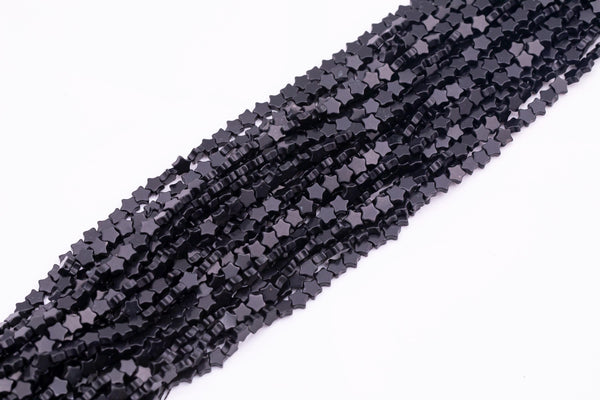 Natural Black Onyx Beads 6mm Star Shaped Real Gemstone 15" Strand Smooth Gemstone Beads