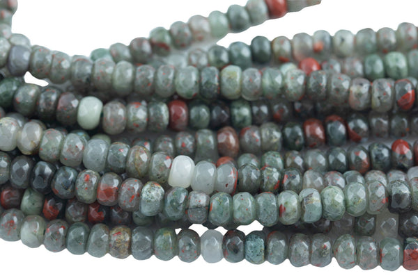 Natural Blood Stone, High Quality in Faceted Roundel, 6 and 8mm- Full 15.5 Inch Strand-Full Strand 15.5 inch Strand Gemstone Beads