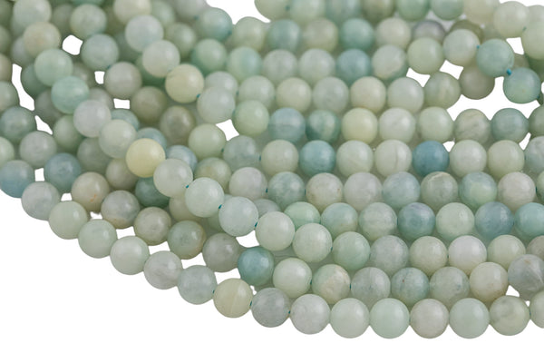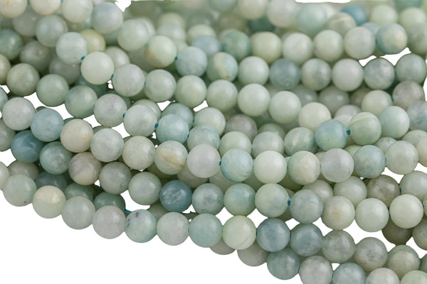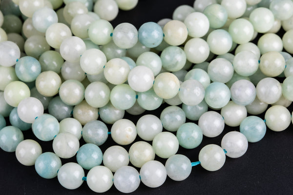 Natural Blue Green Aquamarine Beads - Smooth Round 6mm 8mm 10mm - Full Strand 15.5" - Smooth Gemstone Beads