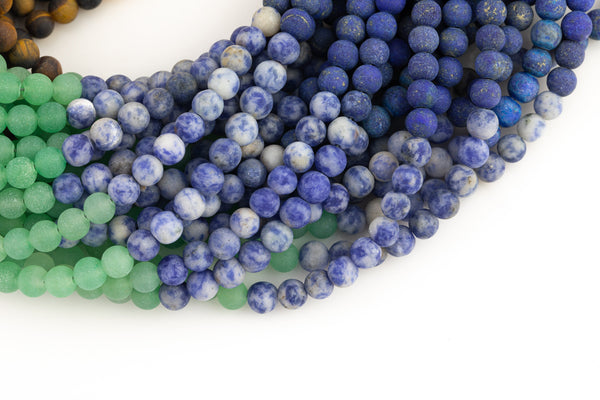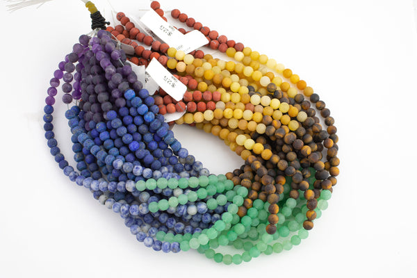 The 7 chakras play an important role in the balance and health of our bodies and represent the 7 energy points in your body starting at the base of your spine and moving all the way up to the top of your head. Each color represents a different Chakra: Crown (amethyst), third eye (lapis), throat (sodalite), heart (aventurine), solar plexus (tigers eye), sacral (yellow jade) and root (red jasper). Our Chakra strands are comprised of the above 7 genuine natural gemstones guaranteed not treated in any way to offer you the best nature has to offer.
