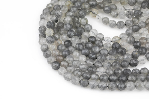 Natural Cloudy Quartz High Quality in Faceted Round-Full Strand 15.5 inch Strand, 4mm, 6mm, 8mm, 12mm, or 14mm Beads AAA Quality