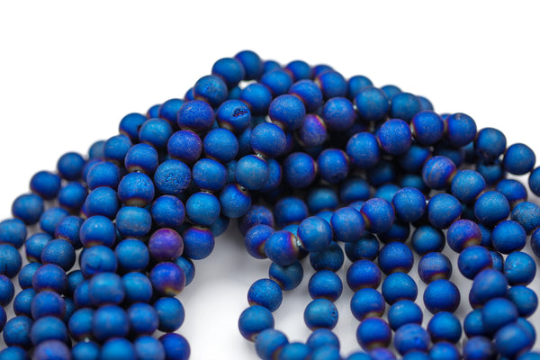 Natural DRUZY AGATE Beads-- Metallic Blue- 8mm, 10mm, 12mm. Full 15.5 inch strand Gemstone Beads