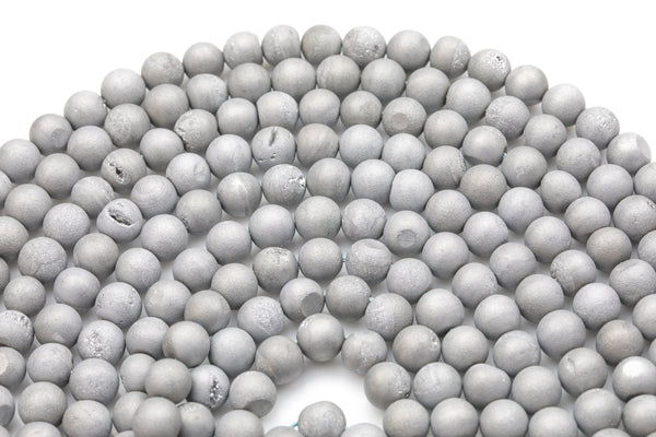 This listing is for one full 15.5" to 16" strand of metallic dark or light gray druzy agate.