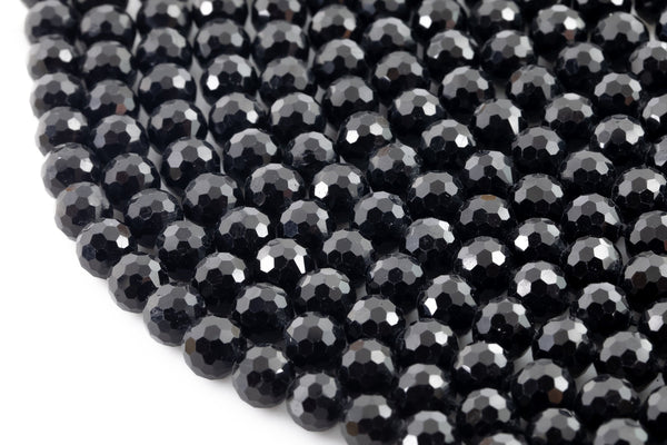 Natural Faceted Black Tourmaline A Grade High Quality in Faceted Round-Full Strand, 4mm, 6mm, 8mm, 12mm - Wholesale Beads Gemstone Beads