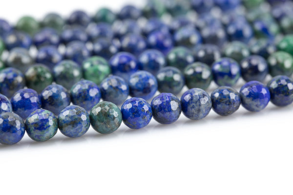 Natural Faceted Malachite Azurite Beads Grade AAA. 4mm, 6mm, 8mm, 10mm, 12mm, 14mm- Full 15.5 Inch strand Gemstone Beads