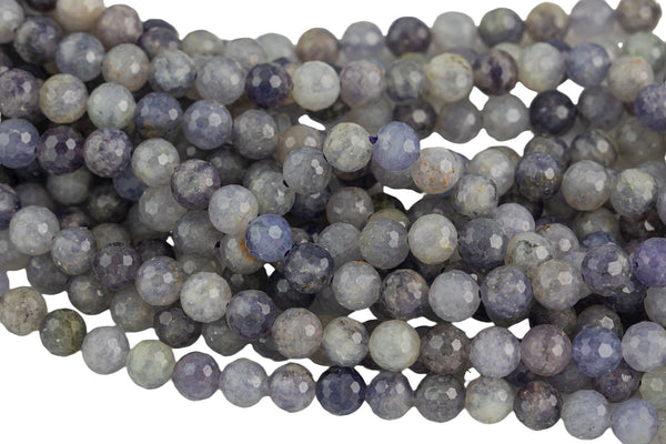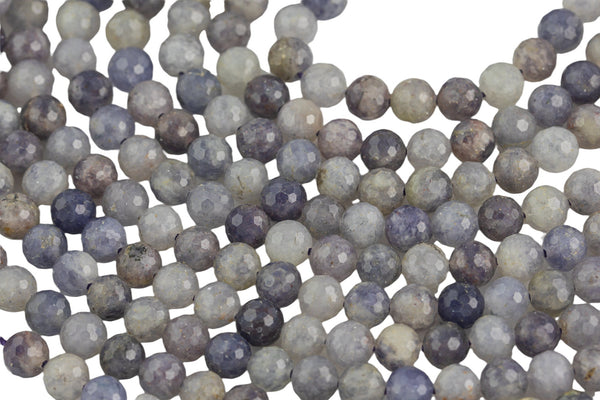 Natural Flower Iolite Beads Full Strands-15.5 inches- Nice Size Hole- Diamond Cutting, High Facets-Nice and Sparkly-Faceted Round