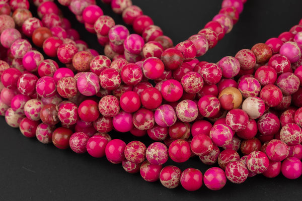 Fusia AFRICAN Sea Sediment Jasper smooth round sizes 4mm, 6mm, 8mm, 10mm, 12mm- Full 15.5 Inch Strand- AAA Quality Gemstone Beads