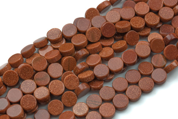 Natural Gold Sand Stone- Flat Coin- Beads-10mm- 40 Pieces- Special Shape- Full Strand- 16 Inches Gemstone Beads