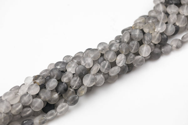 Natural Gray Cloudy Quartz Gold Stone Beads Matte Beads - Puffy Coin Shaped 10mm - 1 strand ~15.5" - Special Exclusive Item Gemstone Beads