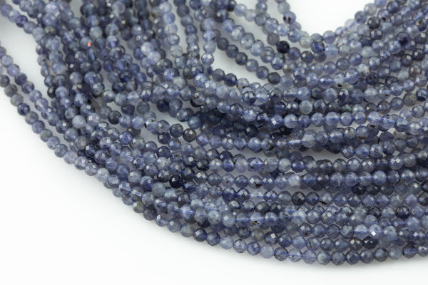 Natural Iolite Quartz Beads Full Strands-15.5 inches-3mm or 4mm- Nice Size Hole- Diamond Cutting, High Facets-Sparkly-Faceted Round