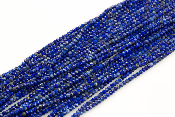 Natural Lapis Beads Full Strands-15.5 inches-3x4mm- Nice Size Hole- Diamond Cutting, High Facets-Nice and Sparkly-Faceted Rondelle