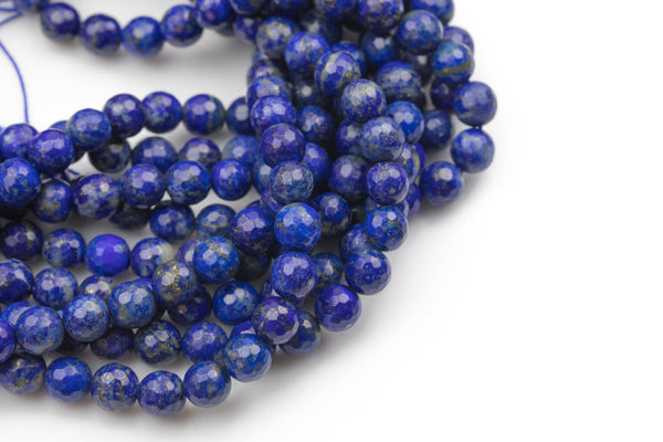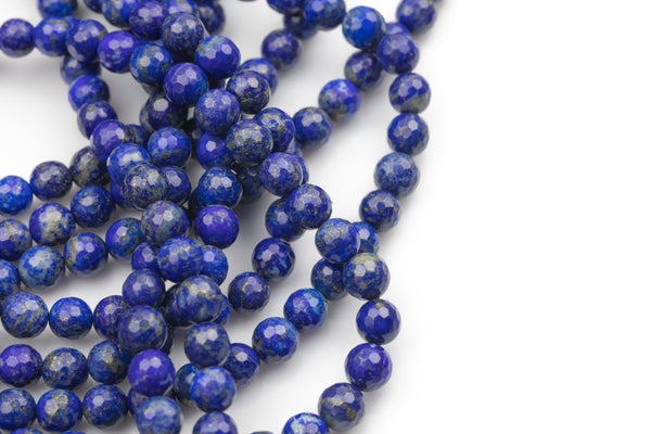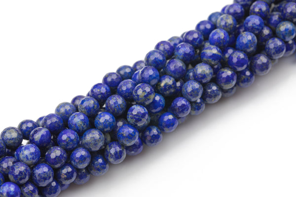 Natural Lapis, No Dye High Quality in Faceted Round, 4mm, 6mm, 8mm, 10mm- Full 15.5 Inch Strand Gemstone Beads