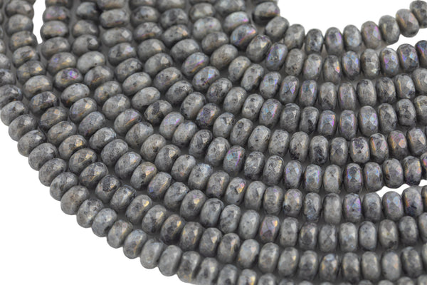 Natural Larvikite Marble Labradorite ab Faceted Roundel- 6mm, 8mm, 10mm- Full 15.5 Inch Strand Gemstone Beads