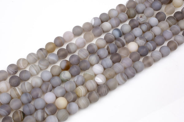 Natural Matt Banded Gray Agate, High Quality in Matte Round, 6mm, 8mm, 10mm- In Full 15.5 Inch Strand Gemstone Beads