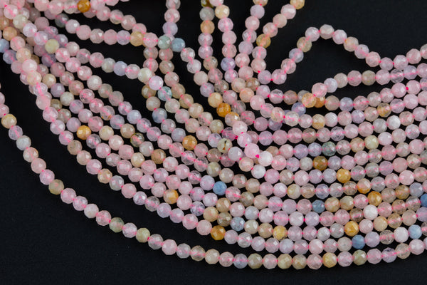 Natural Morganite Beryl Beads Full Strands-15.5 inches- 2mm 3mm- Nice Size Hole- Diamond Cutting -Nice and Sparkly-Faceted Round