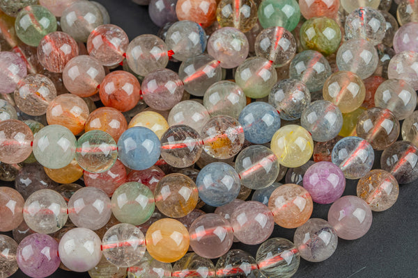 Natural Multi Color Rutile Quartz 4mm 6mm Smooth Round Beads Gold Yellow Rutilated Quartz Tons of Sharp Rutile Hair Needle 15.5" Strand